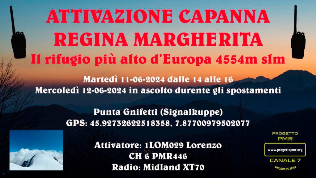 Attraverso una postazione sul monte Mottarone e attraverso un dispositivo satellitare avremmo un collegamento con Lorenzo che ci aggiornerà sull’andamento della spedizione e ci comunicherà anche eventuali cambi di canale se il canale 6 fosse occupato o disturbato.